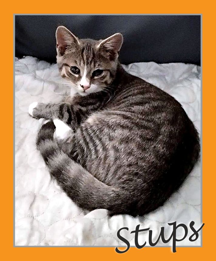 Stups (geb. ca Mai 2025) kam im August aus einer Beschlagnahmung des Veterinäramtes zu uns. Trotz seiner schwierigen Vergangenheit hat der kleine Kater seine Lebensfreude nicht verloren!